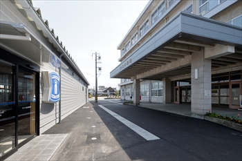 | 立山町役場前に整備された「まちなか生活支援拠点施設(ローソン+書店併設)」の新築工事です。通常のコンビニエンスストアと違い、木質の意匠を要所に用いて立山らしい温かみがある設計がしてありました。役場の敷地内での施工、更には冬季期間での施工ということで常に高い緊張感がありましたが、無事竣工することができました。 |