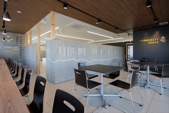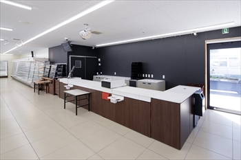 | 立山町役場前に整備された「まちなか生活支援拠点施設(ローソン+書店併設)」の新築工事です。通常のコンビニエンスストアと違い、木質の意匠を要所に用いて立山らしい温かみがある設計がしてありました。役場の敷地内での施工、更には冬季期間での施工ということで常に高い緊張感がありましたが、無事竣工することができました。 |